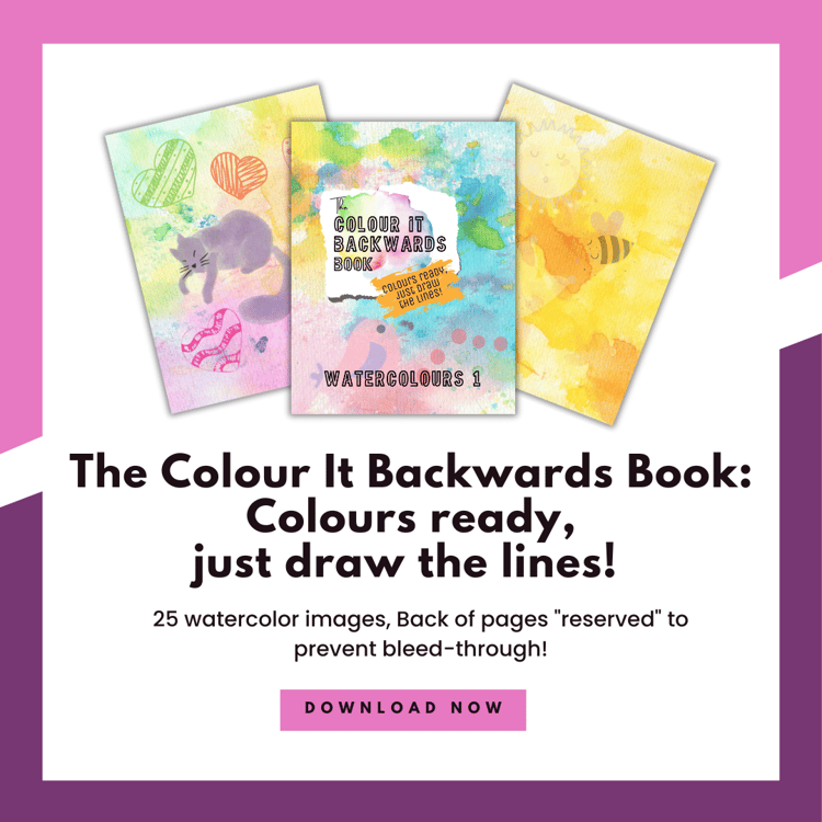 Reverse/inverse colouring (backwards coloring) means using various types of images to create your own pictures. The colours are provided and your task is to supply the lines. There are many ways how you can complete these pictures. Draw, doodle, trace, create patterns or write on the pages. There is no right or wrong. You are simply letting your imagination take over and that is what counts. You will only ever need one writing utensil (pen, marker, felt tip) but you can also line up your arsenal and use it all. A win, win always!