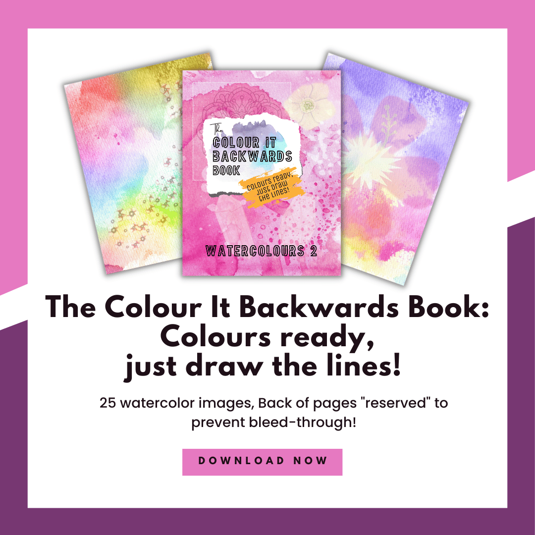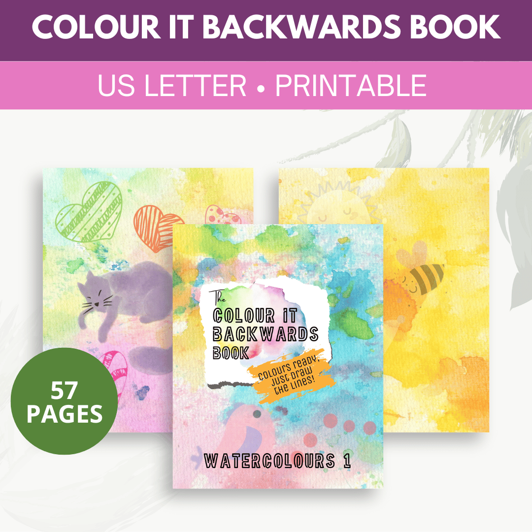 This printable Colour It Backwards Book is part 2 od the Watercolours series and an enjoyable printable doodle activity. You can preview the whole book here: https://bit.ly/reversecoloring2