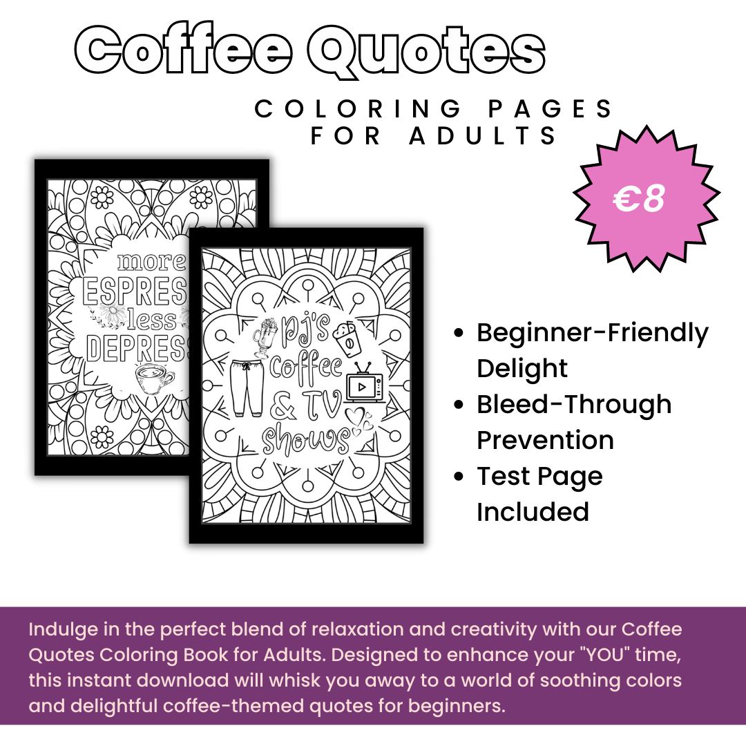 This Coffee Quotes Coloring Book for Adults will help you enjoy your "YOU" time and on top you can brew a cuppa of your favourite! It is great for beginner colorists because it contains simple and easy to color images.
